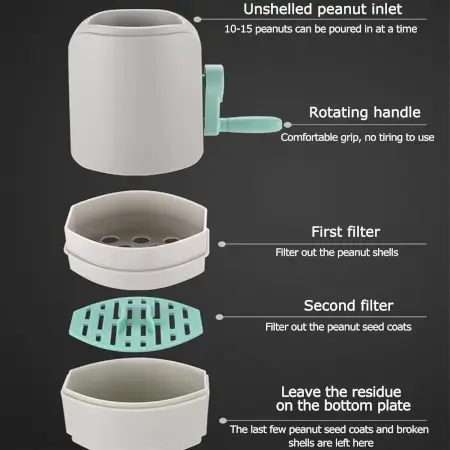 Manual Hand-Crank Peanut Sheller Machine with Built-in Filter Separator and Storage Portable Household Nut Cracker Tool for Peanuts, Chickpeas, Beans & More Description:- Simplify your peanut shelling process with this Manual Hand-Crank Peanut Sheller Machine, an efficient and user-friendly kitchen tool for effortlessly removing shells from peanuts, chickpeas, and other small legumes. Featuring a smooth-turning hand crank, internal separating blades, and a built-in filter compartment, this sheller ensures that you get clean, ready-to-eat nuts in seconds. The lightweight yet sturdy construction and detachable design make it easy to use, clean, and store, making it an excellent addition to every home kitchen or dry snacks counter Key Features:- Manual Hand-Crank Operation : No electricity required; smooth rotating handle for easy shelling Efficient Shelling Mechanism : Internal grinding structure cracks shells and separates nuts cleanly Built-In Filter Separator : Filters out shells and debris for quick cleanup Food-Grade Plastic Build : Durable and safe for food contact Compact & Portable : Lightweight design ideal for home use, picnics, or mobile snack vendors Easy to Clean : Detachable parts allow for thorough washing and maintenance Multi-Use Capability : Works for peanuts, chickpeas, small beans, and similar dry legumes Ideal For:- Home kitchens and daily household use Street food vendors and dry snacks sellers Health-conscious users who prefer freshly shelled nuts Small-scale nut processing for gift boxes or party preparation Gifting to kitchen gadget lovers Specifications:- Product Type : Manual Peanut Sheller Material : Food-Grade Plastic Operation : Hand Crank Keywords :- Peanut Sheller Nut Cracking Machine Hand Crank Sheller Shell Separator Home Use Peanut Sheller Kitchen Nut Sheller Hand-Operated Peanut Sheller Dimension:- Volu. Weight (Gm) :- 318 Product Weight (Gm) :- 352 Ship Weight (Gm) :- 352 Length (Cm) :- 9 Breadth (Cm) :- 9 Height (Cm) :- 19